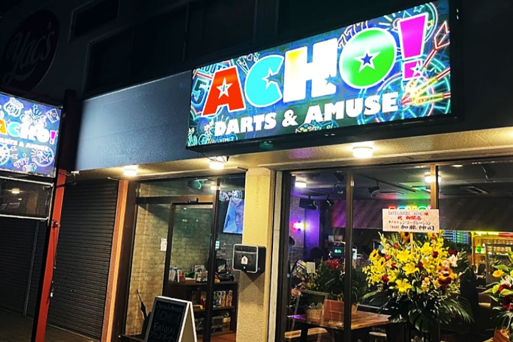 DARTS&AMUSE ACHO!は、仕事帰りや週末にも気軽に立ち寄れるアミューズメントバーです。